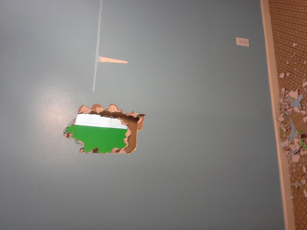 It appears that someone has knocked a hole in a wall that separates two rooms. |