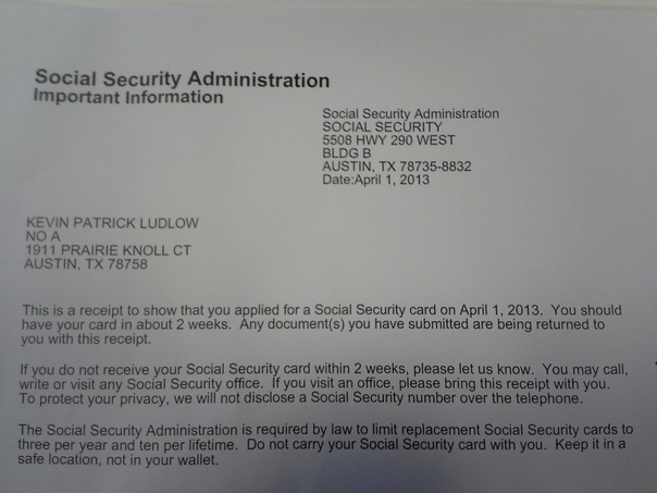 The precise receipt received by Kevin contained many details explaining his newly sent social security card. |