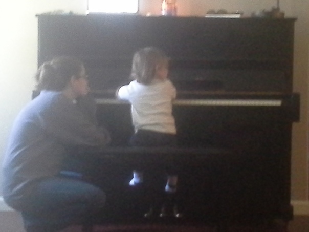 Mother watching her child play the piano |