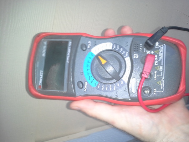 a man holding a multimeter in his hand and two pair of wire's connected to it |