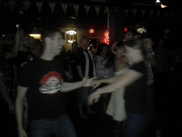 The two in the photo appear to be blurry due to them both moving, maybe dancing. |