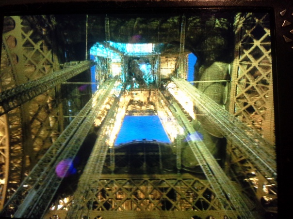 A large pool sitting in the middle lots of metal scaffolding. |