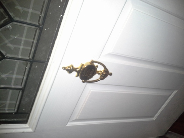 The image above shows an old fashioned door in great condition with a brass ring. |