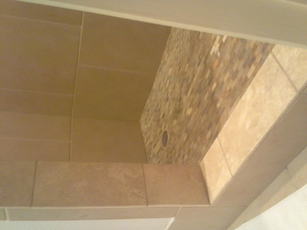This was my first tile job putting in travertine tile, which looks professionally done. |