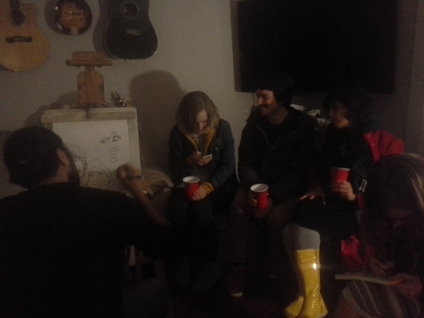 THIS IS A COLLEGE PARTY WITH RED SOLO CUPS AND YELLOW RAIN BOOTS |