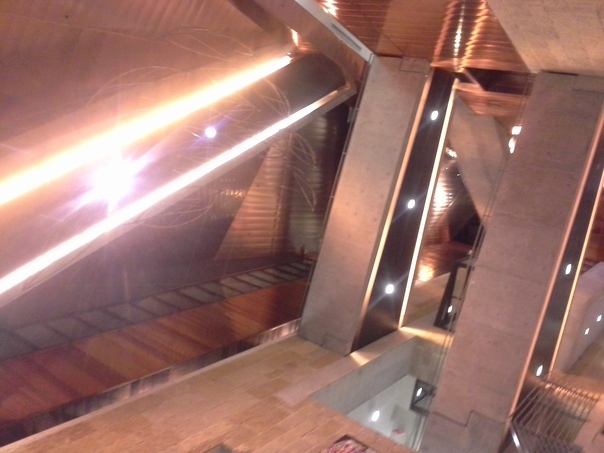 a room with white lights and mirrors that have reflections |