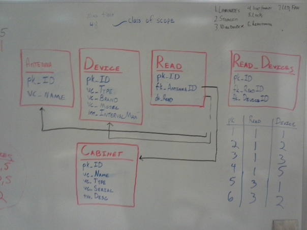 A white board written on with black, red and blue marker. |