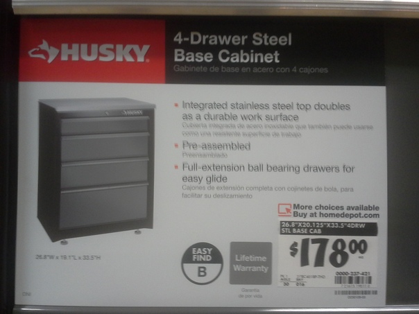 The Husky four drawer cabinet is available for sale at this store for $178.00. |