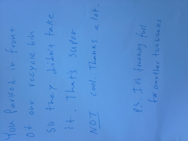 This letter was written by an angry individual that couldn't get their recycle bin picked up. |
