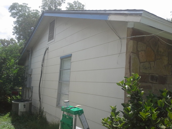 This home has different siding on both sides, one of whichappears to be made of large bricks. |