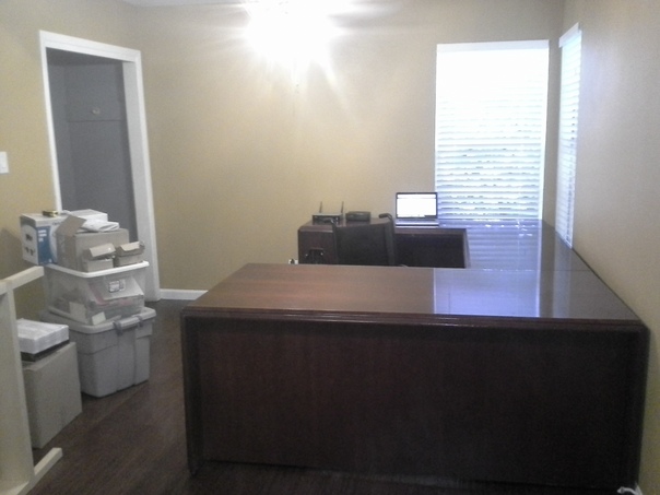 The small office seems much bigger once the numerous possessions have been packed up into three containers. |