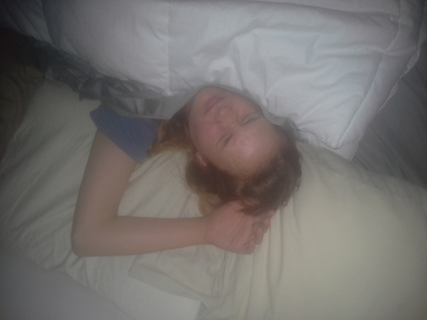 This woman was sleeping peacefully before the flash of the camera went off in her face. |