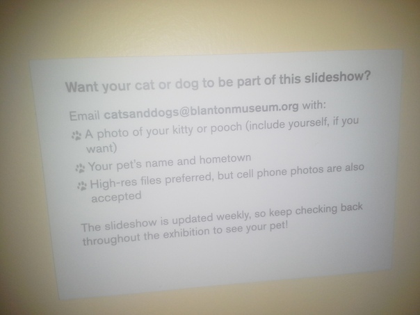 The Blanton Museum posts a sign inviting cat and dog owners to submit photos for an exhibit. |