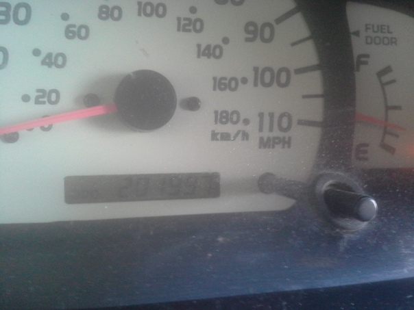 The speedometer has many numbers and has a pointer that is orange in color. |
