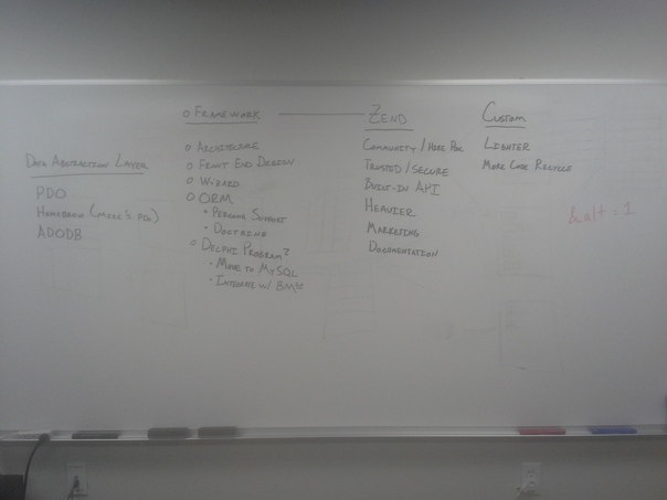 A large white marker board with black writing on it's surface. |