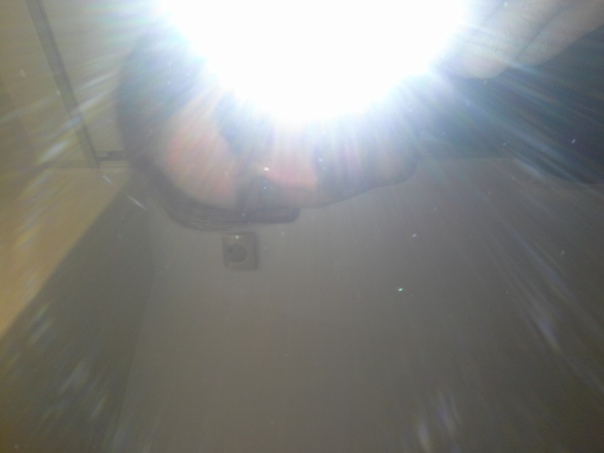 a sideways view of a man with a slight beard and a shining light in the camera. |