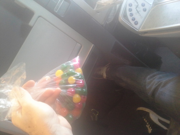 A person carrying a plastic bag containing colorful candies |