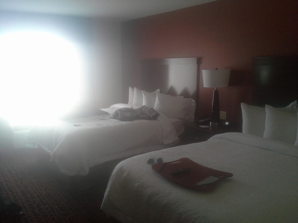 a picture of a hotel room that looks like it has just been walked into |