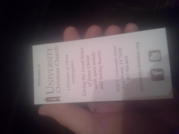 A flyer for University Christian church with tiny text on it. |