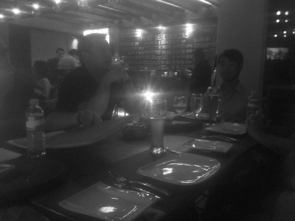 Sitting in the dark restaurant, the table of three waits for the rest of theri party to arrive. |