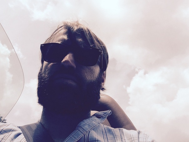 A hipster wearing dark sunglasses while talking a selfie of himself. |