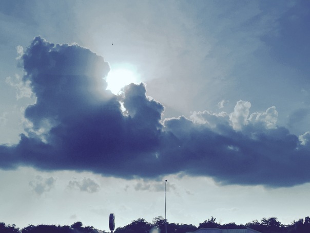 A large gray cloud in the sky partially blocking the sun. |