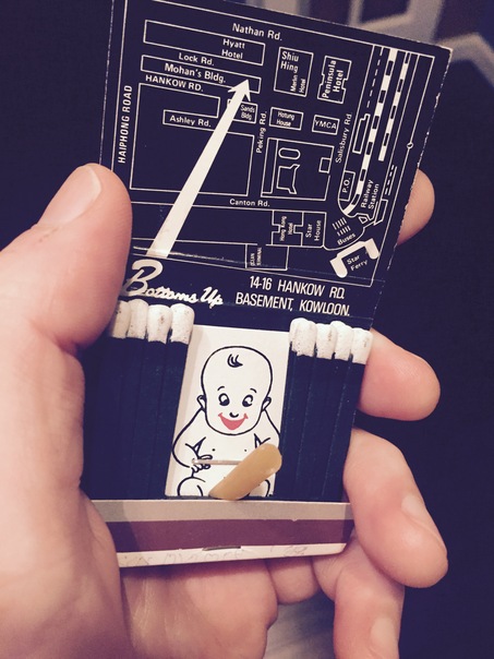 A hand holing up a book of matches featuring a baby with a boner. |