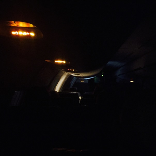This is a very dark picture possibly resembling the inside of a limousine at night.