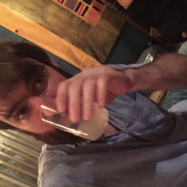 A middle aged white man drinking a liquid.