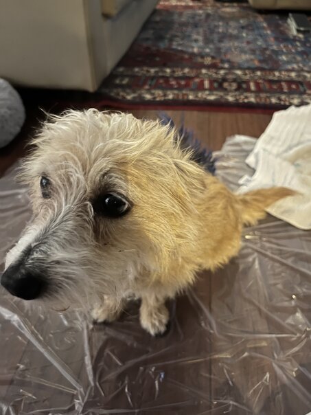 She's a super sweet and trusting dog and had no problem sitting still while we worked on her.
