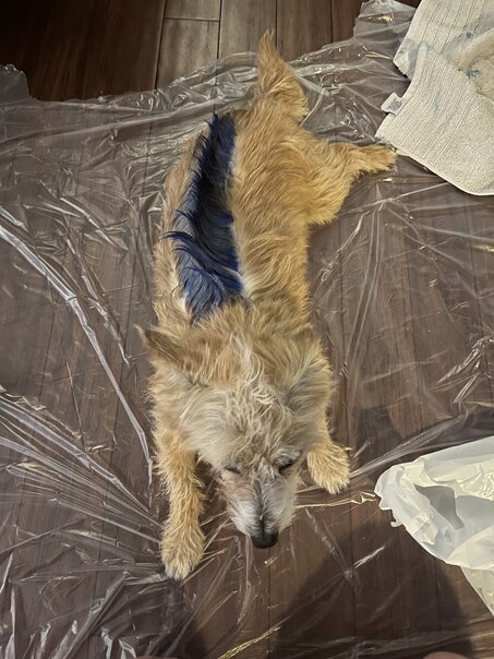 She's a super sweet and trusting dog and had no problem sitting still while we worked on her.