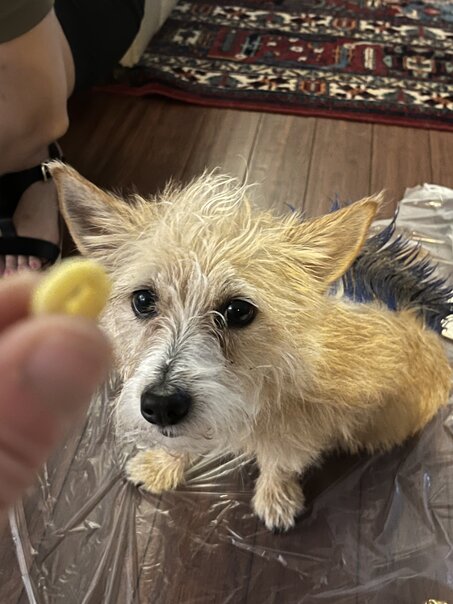 She's a super sweet and trusting dog and had no problem sitting still while we worked on her.