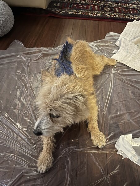 She's a super sweet and trusting dog and had no problem sitting still while we worked on her.