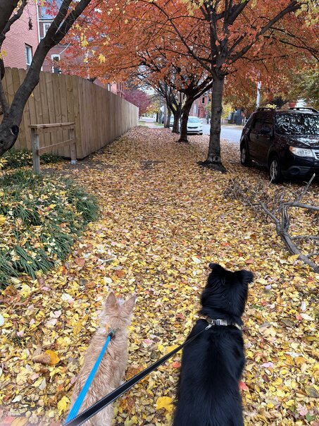 I took the dogs for a walk in the morning and the fall colors were so incredibly vibrant. The leaves literally lined the walkways.