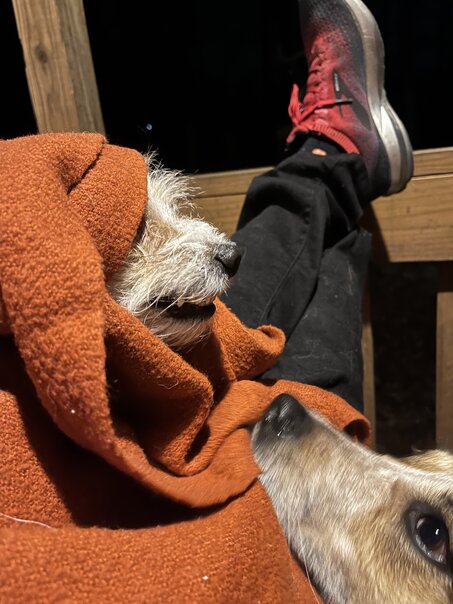 As Claire used to live in the studio behind my house, her dog, Bobby, and Atti have been doggy friends for years now.