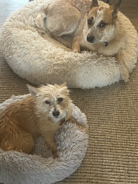 Bobby has a fuzzy bed that he loves to lounge around in. Since Atti has been hanging out with him for the past while, she's taken a liking to it and so Claire bought her a brand new one.