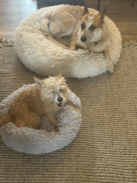 Bobby has a fuzzy bed that he loves to lounge around in. Since Atti has been hanging out with him for the past while, she's taken a liking to it and so Claire bought her a brand new one.