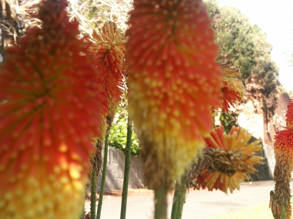 this picture looks like it was taken maybe somewhere inthe bahamas with the brightly colored tropical plants.