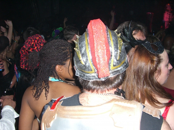 The night before the party I cooked some food for the Crocketts and Krista helped me to design and build the mask that I ultimately wore. I took the project a step further and added some electricity allowing for the eyes and mouth to light up.