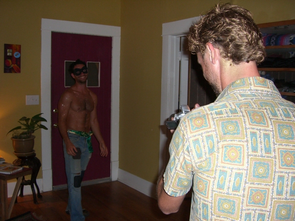 The night before the party I cooked some food for the Crocketts and Krista helped me to design and build the mask that I ultimately wore. I took the project a step further and added some electricity allowing for the eyes and mouth to light up.