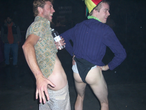 Here we see a couple of guy's mooning the camera.