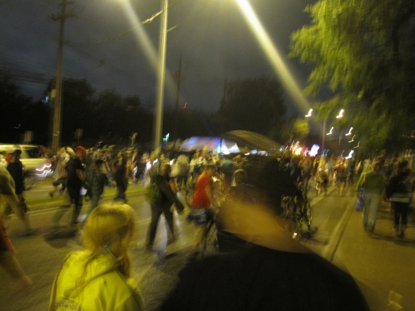 Fortunately I brought a hefty backpack with me that my brother in law had given me and we used it as a mobile cooler. Better still is that because we had to wear the ponchos all day, it was really easy to pee into our empty beer cans in public. Rymo opted against this practice, while TFlo and I became masters of it.