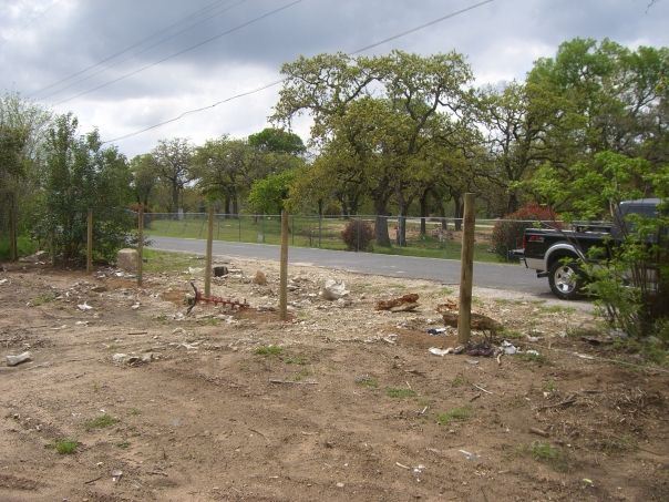 I hired a gas powered auger from Rent-Equip (on Burnet and Braker) and proceeded to dig 30 holes, each about 3 feet deep into the ground and about 8 to 10 inches in diameter.