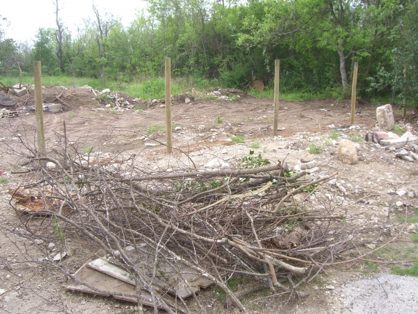 I hired a gas powered auger from Rent-Equip (on Burnet and Braker) and proceeded to dig 30 holes, each about 3 feet deep into the ground and about 8 to 10 inches in diameter.