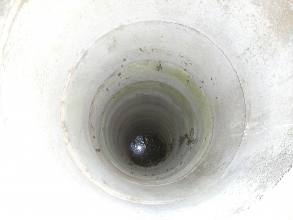 This looks like a length of pipe such as a drain pipe that leads out to the street, photographed from the inside.