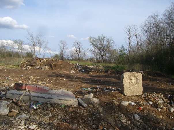 a site with some rubble from a demolishion in a wooded area