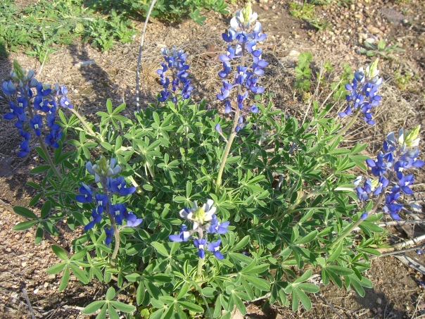 Deep purple lupine flowers with sparse blossoms growing in the wild.