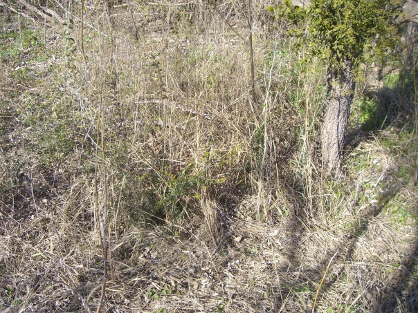 Some dry brush in a forest.