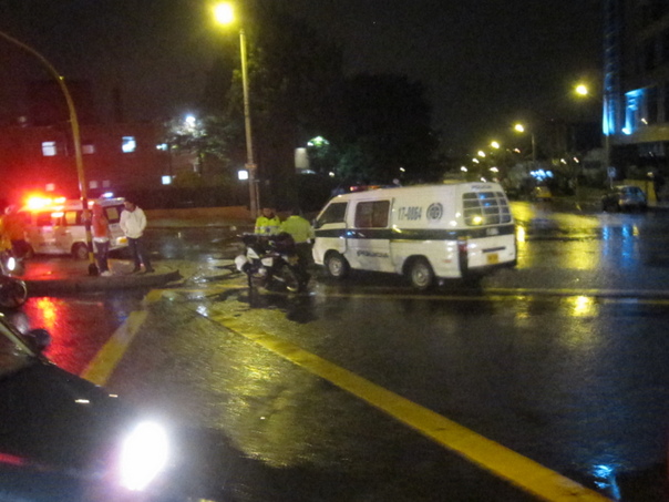 This appears to be a night time accident scene where an ambulance is present.