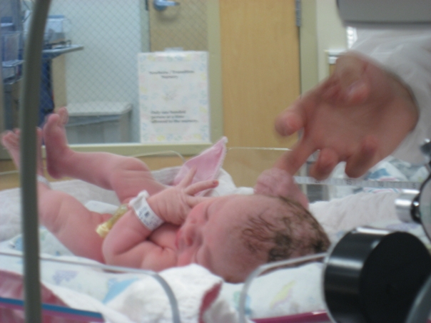 Krista seemed a little uncomfortable at first, but I'm told that everything moved along smoothly and it was a pretty simple birth overall.